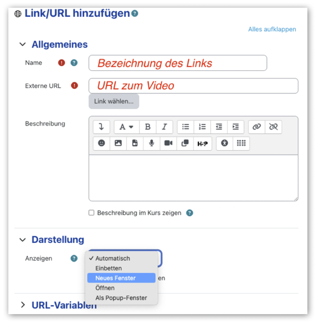- Videos darstellen - verschiedene Optionen über Moodle, VIMP oder MS Sharepoint