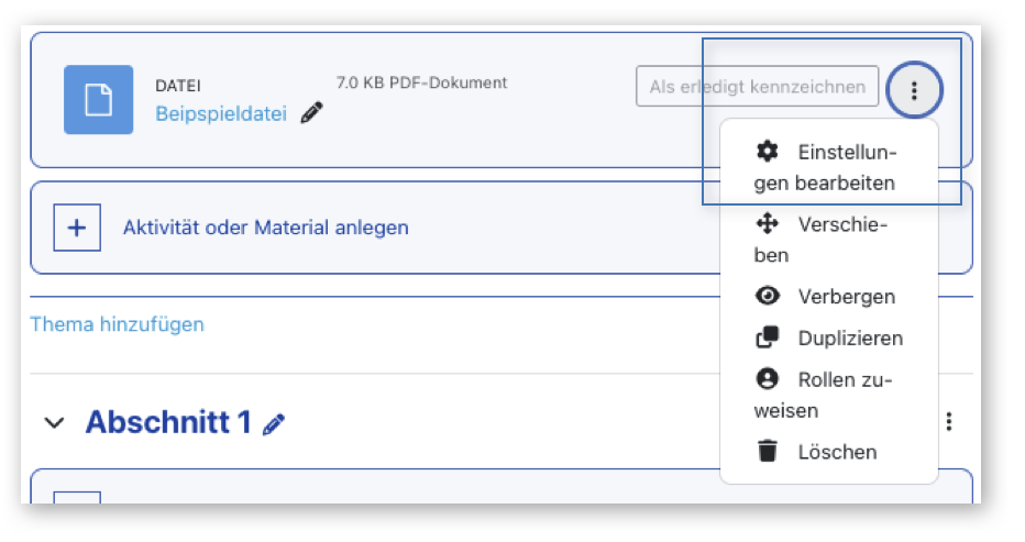 den einzelnen Kursräumen haben Moodle-Nutzende unterschiedliche Rollen