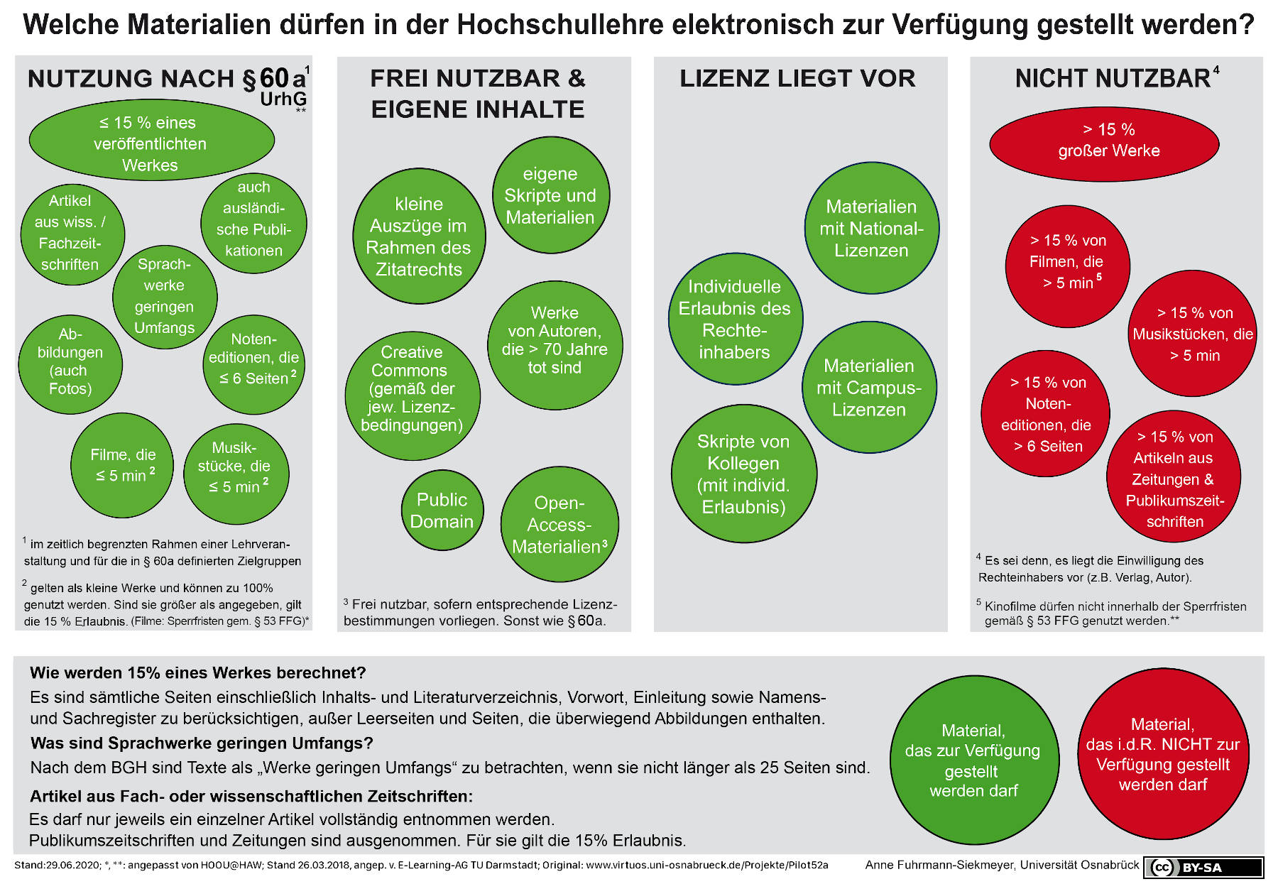 - sog. freie Inhalte, d. h. solche, die unter einer offenen Lizenz stehen, bei Einhaltung der Lizenzbedingungen (z. B. Creative-Commons-Lizenz (z. B. CC BY-SA 4.0) Inzwischen gibt es eine große Bandbreite an Materialien, auch für Lehrzwecke, z. B. auch der Hamburg Open Online University (HOOU);