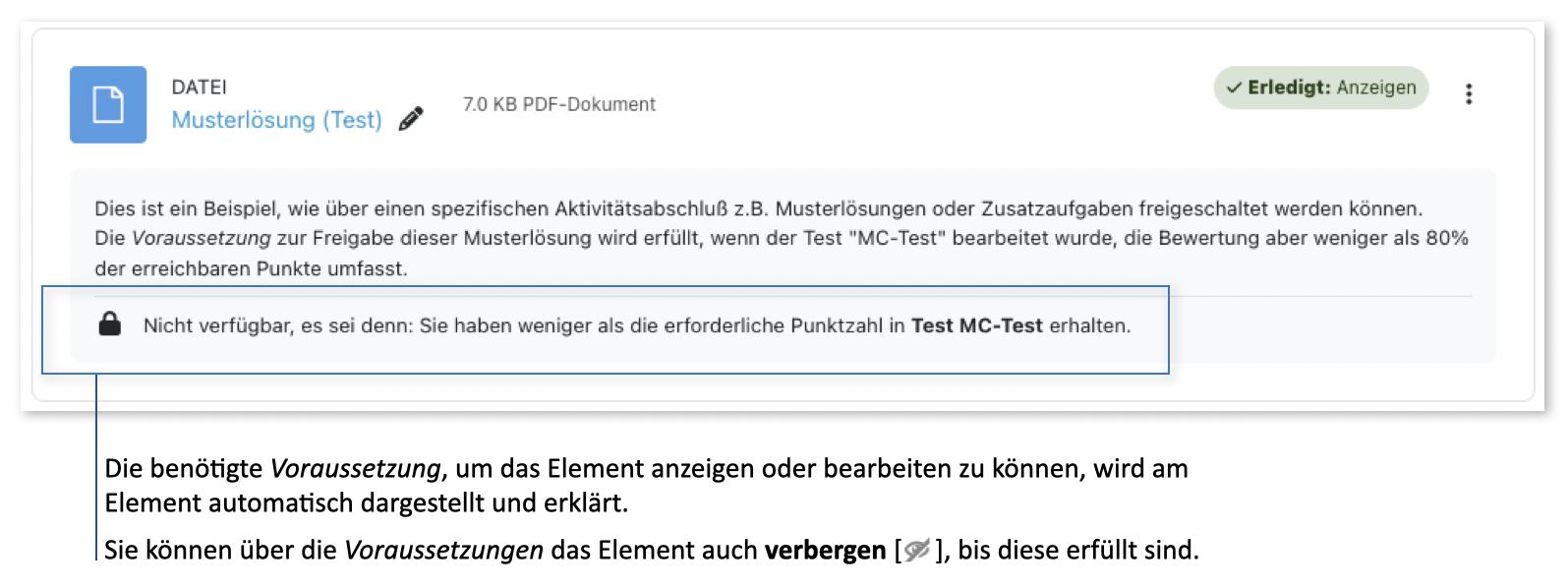 7. "Voraussetzungen" um Materialien oder Aktivitäten freizugeben