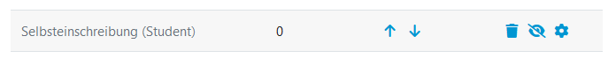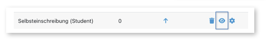 - In der Übersicht der Einschreibemethoden aktivieren Sie jetzt die neue Selbsteinschreibung (Student) über das anklickbare Augensymbol (das Auge muss geöffnet sein) [