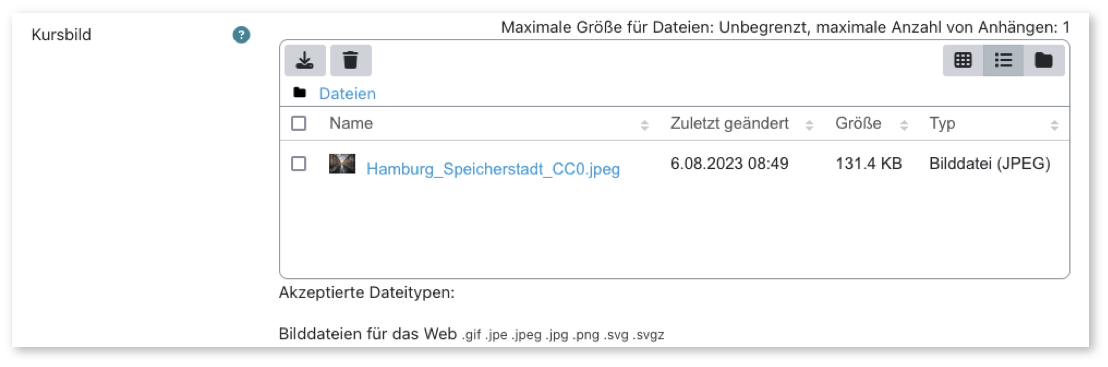 Sie finden dies unter -> Einstellungen -> Beschreibung -> Kursbild.