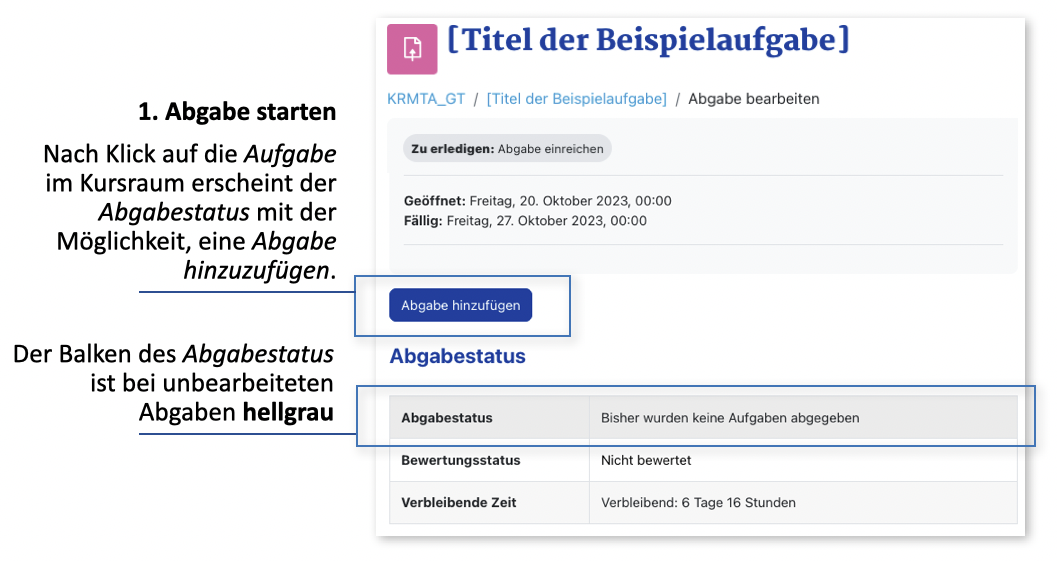 Nachdem die Studierenden im Kursraum auf die "Aufgabe" geklickt haben, gehen sie wie folgt vor: