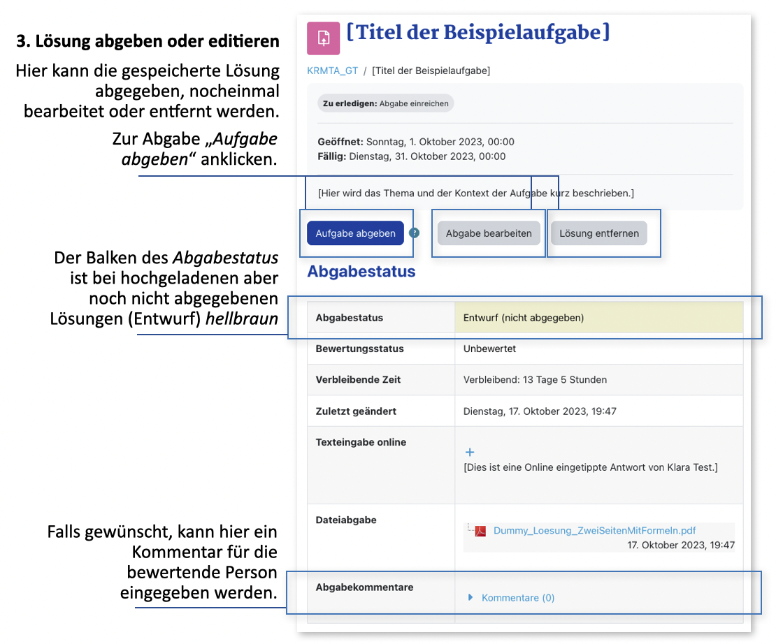 3. Lösung im Entwurfszustand entweder abgeben, erneut bearbeiten oder löschen