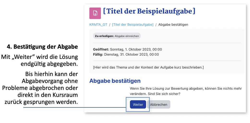 Wenn hier auf "Aufgabe abgeben" geklickt wurde, geht es weiter zur Abgabebestätigung.