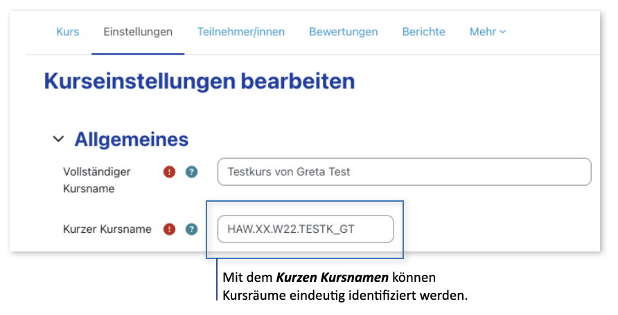 der den selben Namen hat, wie ein bereits im Zielkursraum