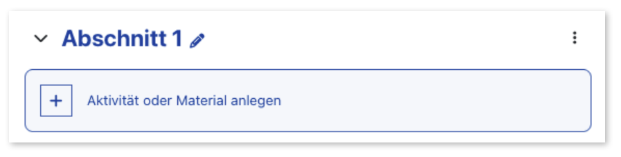 Klicken Sie in Ihrem Kursraum in einem der Abschnitte auf Aktivität oder Material anlegen.