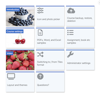 • Visuelle Gestaltungüber Icons, Kursbild, Thumbnails, farbige Textblöcke; die alternative Darstellungen von Materialien, Aktivitäten und Themenabschnitten; Hinweise für die Darstellung auf Smartphones (responsives Design)