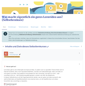 In diesem Selbstlernkurs soll die Frage beantwortet werden, was ein gutes Lernvideo ausmacht – also welche Merkmale und Qualitätsstandards man ansetzen kann, um die Qualität eines Lernvideos hinsichtlich des Lernerfolgs zu bewerten.